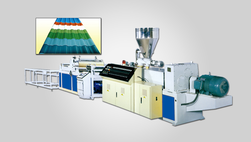SJW 系列塑料擠出瓦輔助機與本廠生產的擠出機及機頭聯合配置組成生產流水線,可連續生產PVC、PP、PC、PE等塑料瓦片等。